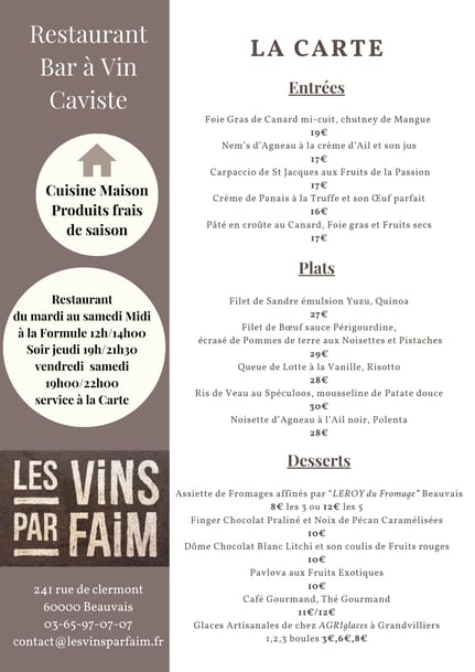 Le restaurant des Vins par Faim vous propose une cuisine traditionnelle jeune et inventive, travaillée avec des produits frais et du terroir.